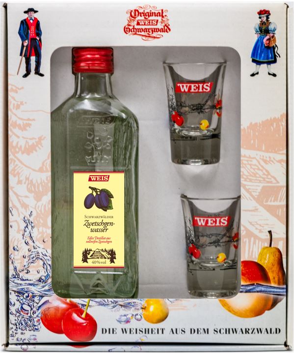 Geschenkpackung Holzscheitflasche Zwetschgenwasser 40% 200ml